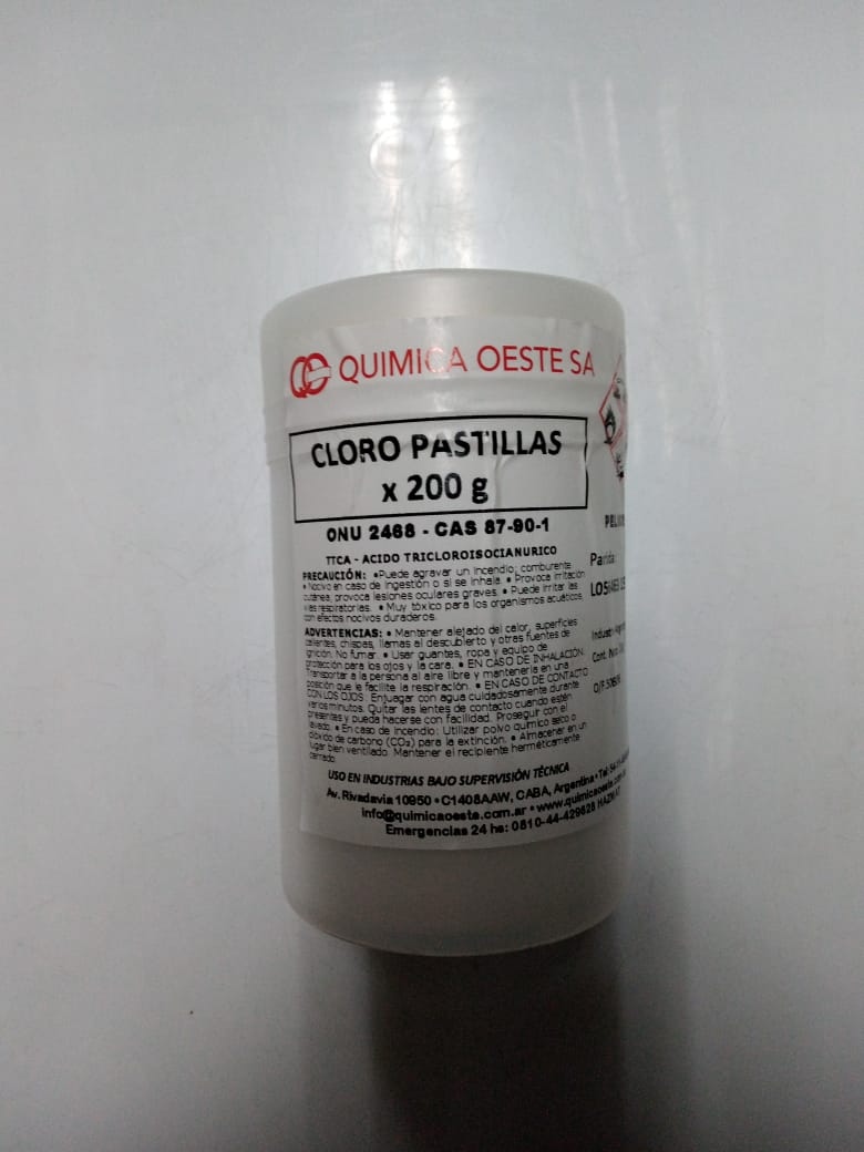 Pastilla de cloro para piletas, solo de cloro, cada pastilla es para 20.000 litros de agua.