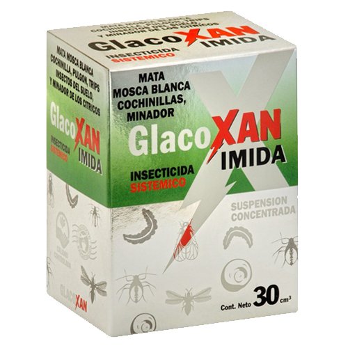 Preparación: En función de la cantidad y tamaño de las plantas a tratar agregue al pulverizador la mitad del volumen total de agua necesaria para provocar un buen mojado. Observe la tabla de cultivos, plagas y dosis y en función del problema con el gotero dosificador agregue la cantidad de GLACOXAN IMIDA necesaria, considerando que 20 gotas equivalen a 1 cm3. Complete luego el volumen de agua en el pulverizador, agite y aplique el producto sobre el follaje de la/s planta/s.